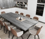 The distinctive veining patterns creates fludity and dynamic element to the tabletop.